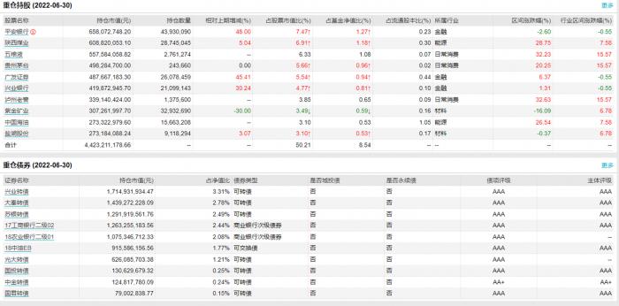 从披露的二季报来看,二季度该基金债券资产占比79.66%,其中主要为可转债,前五大债券分别为:长证转债、21国债16、隆22转债、20国债03、通22转债。