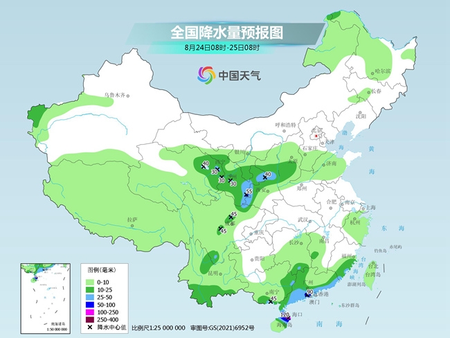 今明两天,青海东部、甘肃中东部、宁夏、陕西中南部、山西、河南等地将有中到大雨,局地暴雨,上述部分地区将有短时强降水天气,小时雨量20~40毫米;另外,青海东部、甘肃东部、宁夏南部等地局地将有雷暴大风或冰雹天气。
