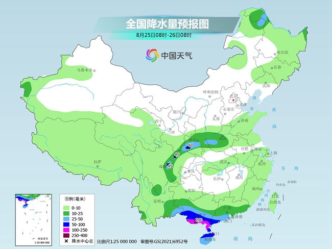 值得注意的是,8月26日起至月底,随着冷空气趋于活跃,华西秋雨天气形势建立,陕西中南部、四川盆地西部和北部等地降水将明显增多,此次降水过程持续时间长、累计雨量大,并且由于前期大气积累了很多不稳定能量,降水具有一定对流性质,短时强降水、四川盆地夜雨特征明显。此外,四川、重庆等地前期高温少雨,需防范此次强降雨过程可能导致旱涝急转。