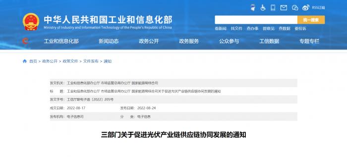 8月24日,工业和信息化部办公厅、市场监管总局办公厅、国家能源局综合司发布关于促进光伏产业链供应链协同发展的通知(下称“该通知”),对哄抬价格、垄断、倒卖路条、强制配套产业等行为严厉打击,并为产业链全链合作等作出指导。