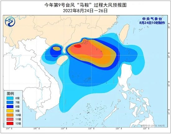 此外,大风方面,24日至26日,南海中北部、巴士海峡、台湾海峡南部海面、北部湾、西沙群岛附近海域、中沙群岛附近海域以及台湾岛西南部沿海、广东沿海、广西沿海、海南岛沿海将有7~9级大风,“马鞍”中心经过的附近海域或地区的风力可达10~12级,阵风13~14级。
