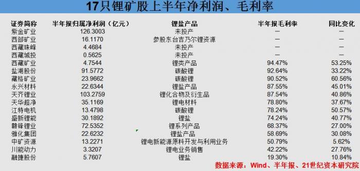A股“期中考”丨平均毛利率达71%!行业利润总额达442亿元,天齐锂业直追“有色一哥”紫金矿业
