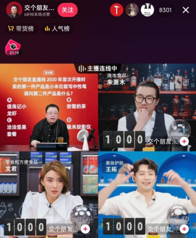 在8月23日晚的一场直播中,罗永浩以答题节目主持人的身份,与交个朋友旗下的多位主播连麦,玩起了“有奖问答”直播。在内容上,将直播带货玩出了新的花样。