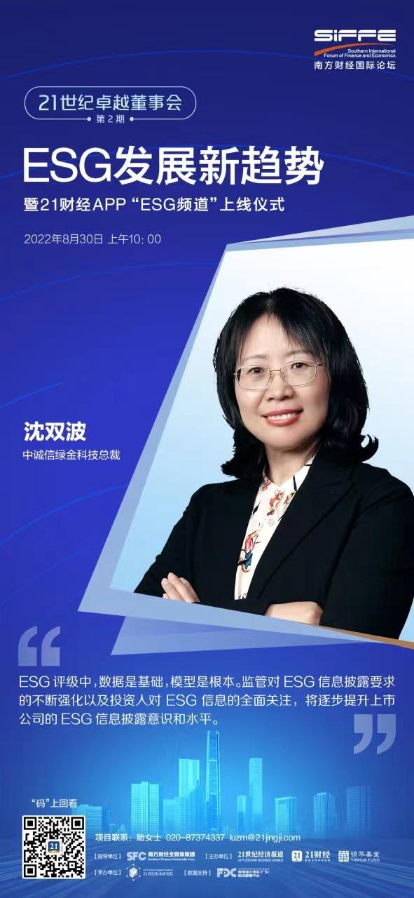 8月30日,由21世纪经济报道主办的南方财经国际论坛21世纪卓越董事会系列活动第二期会议暨21财经APP“ESG频道”上线仪式上,与会嘉宾围绕中国上市公司ESG话题探讨ESG热点及趋势。21财经APP“ESG频道”正式启动上线,后续将以更聚焦的媒体视角和智库研究,宣传环境、社会和公司治理(ESG)价值理念。此外,21世纪经济研究院还联合银华基金对外发布了《海外证券监管ESG信息披露趋势》研究报告。
