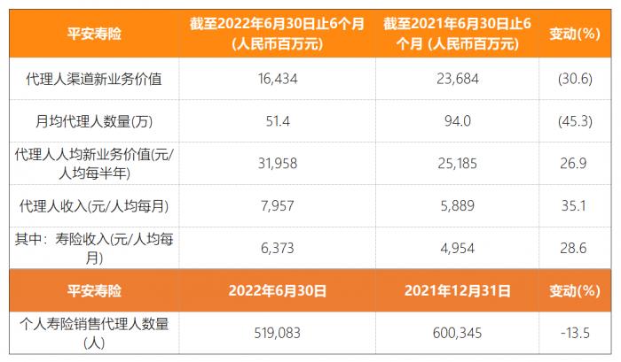 例如,中国平安寿险及健康险业务人寿在2022年上半年营运利润达589.93亿元,同比增长17.4%;代理人渠道新业务价值164.34亿元,同比下降30.6%。