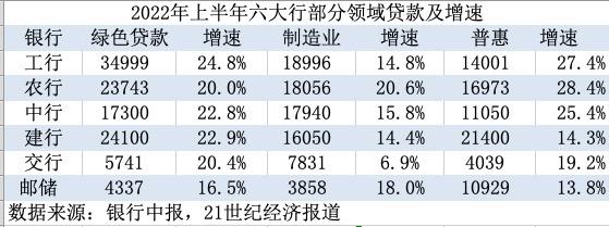 2020年底中央经济工作会议将碳达峰、碳中和作为重点工作后,六大国有银行也加大绿色信贷的投放。数据显示,今年上半年六大行绿色贷款增速几乎都高于20%,增长非常强劲。