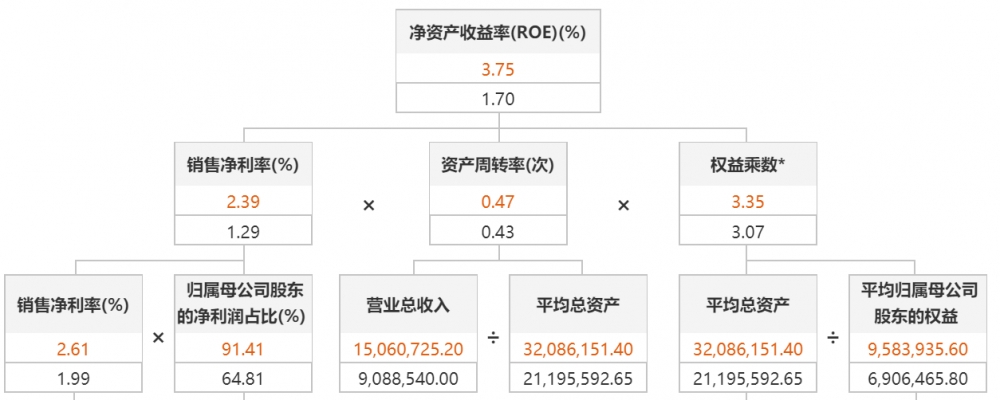 比亚迪2022中报杜邦分析(红字)及去年同期对比(黑字)