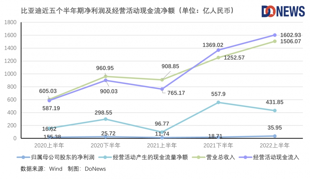 而且比亚迪的经营活动现金流入与营收高度重合,经营活动现金净额明显高于净利润,也足以说明其主业经营良好。