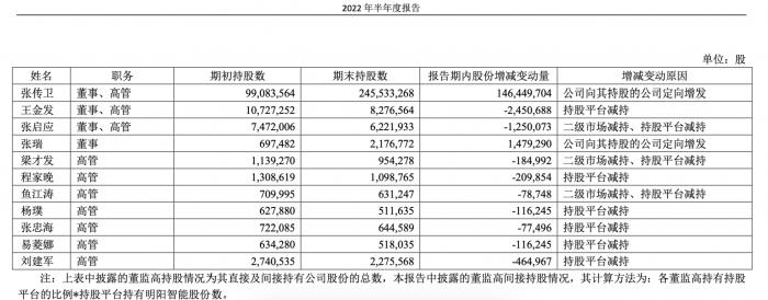 截至6月底,公司共有11名高管,其中9名高管上半年发生了减持行为,仅公司实控人张传卫、董事张瑞未减持。