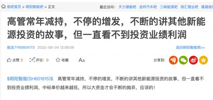 财报数据显示,在明阳智能上市前,Joint Hero持股比例超过5%,位列公司第五大股东,但其目前持有比仅剩0.22%,本次减持构成清仓式减持。不出意外,此事引发了股吧和雪球网友的“吐槽”。