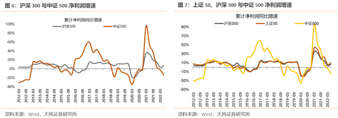 (5)指数:22Q2净利润增速,上证50(9.6%)>沪深300(6.6%)>中证500(-13.7%)。