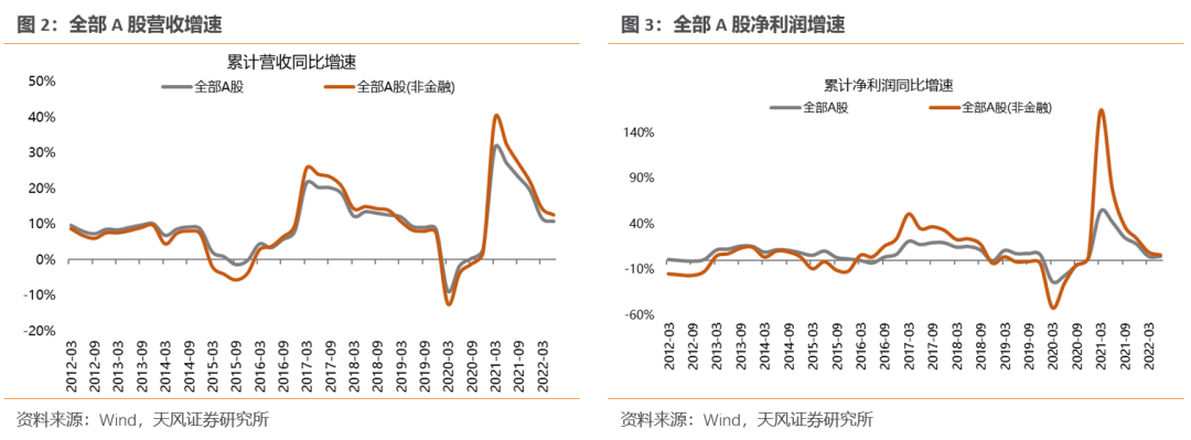 (1)全部A股:22Q2全A非金融净利润累计同比5.6%。