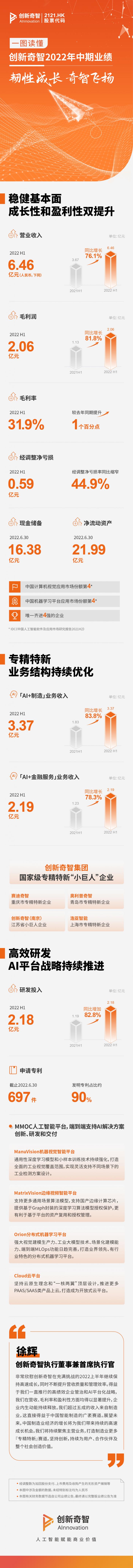 创新奇智2022半年报:营收同比增76.1%,夯实“AI+制造”第一成长引擎
