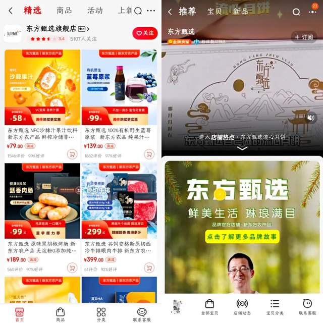 (东方甄选旗舰店 左为京东,右为淘宝)
