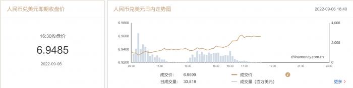 21世纪经济报道记者唐婧 北京报道 央行9月5日晚间下调外汇存准率2个百分点之后,人民币兑美元汇率仍在继续下跌。9月6日,在岸人民币兑美元收盘报6.9485,较上一交易日下跌119点,续刷两年新低。离岸人民币兑美元汇率跌幅扩大一度下破6.97元关口,创2020年8月11日以来新低。