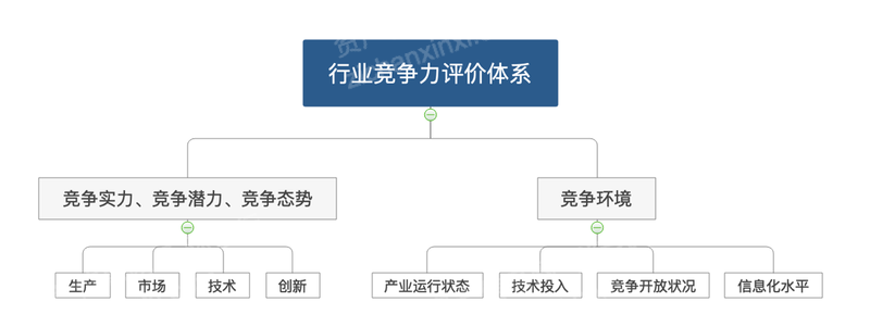 技术方面:包括产业关键技术水平、年开发新技术数等,用来反映行业的技术竞争实力。