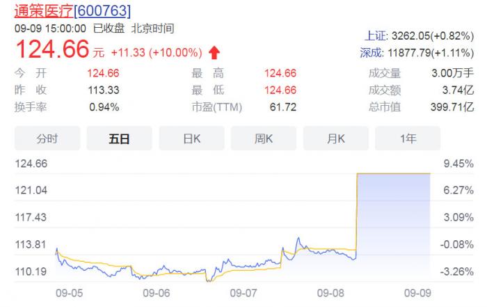 利空出尽,“牙茅”通策医疗,9日一开盘,即封住涨停。