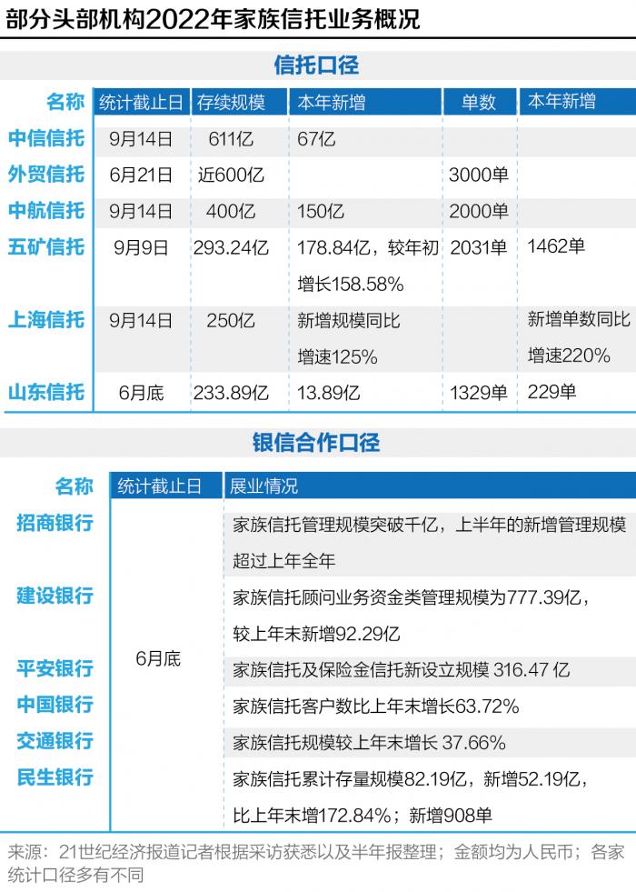 作为大多数信托公司青睐的渠道方,招行上半年家族办公室和家族信托管理规模双双突破千亿元,其中家族信托上半年的新增管理规模超过上年全年。