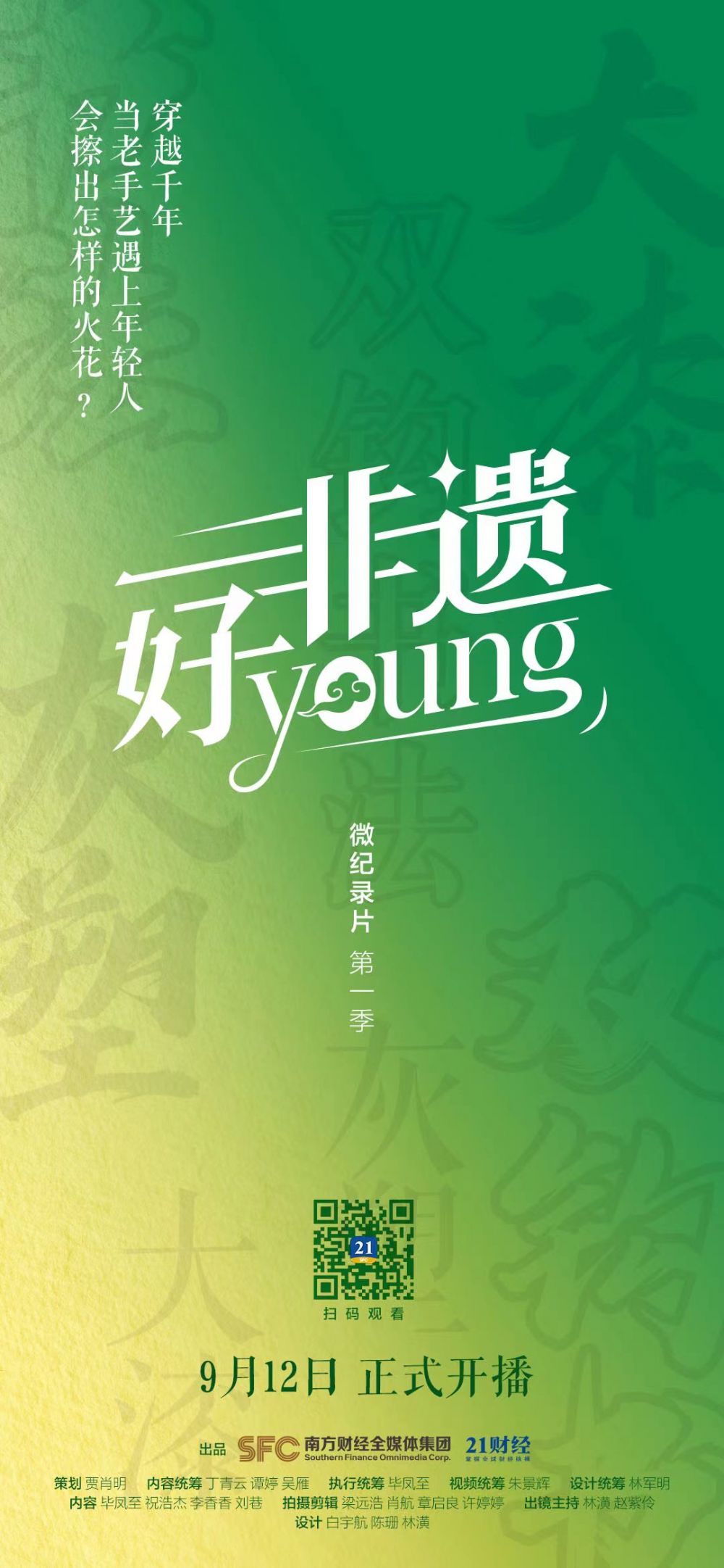 非遗项目能“飞檐走壁”,还能解锁各种新玩法?9月12日,非遗界的“宝藏栏目”——南方财经全媒体集团、21财经客户端出品的系列微纪录片《非遗好young》(第一季/共3期)开播了!