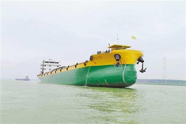 图为国内首艘绿色智能油气电混合动力三峡船型散货运输船——“理航渝建1号”。