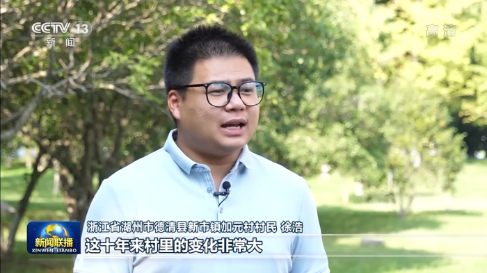 浙江省湖州市德清县新市镇加元村村民 徐浩:这十年来村里的变化非常大,乡容乡貌焕然一新,大家的日子蒸蒸日上,越来越多的年轻人都回来创业了。