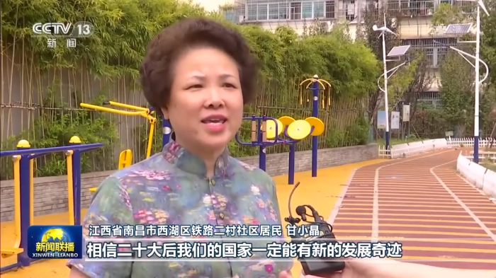 江西省南昌市西湖区铁路二村社区居民甘小晶:习总书记带领我们国家取得了举世瞩目的成就,老百姓获得感满满。我们老旧小区改造摇身一变成为花园式小区,出门就是公园,地铁也修到了家门口,生活品质提高不是一点点。对即将召开的二十大,我们更是充满了期待,相信二十大后,我们的国家一定能有新的发展奇迹。