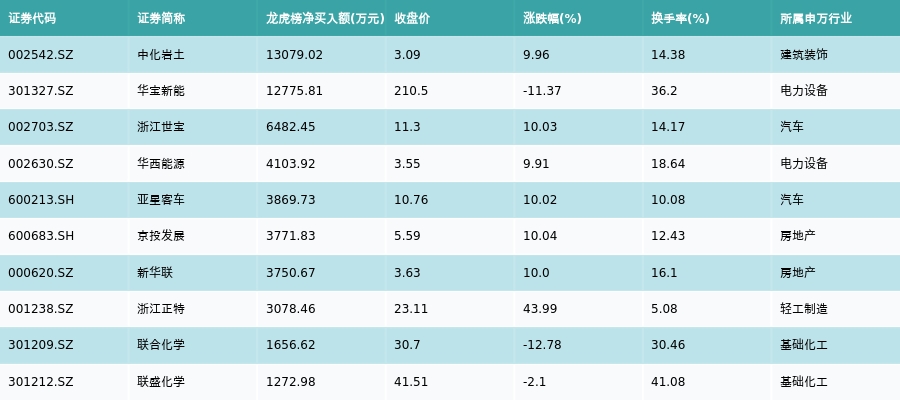 9月19日,龙虎榜营业部净买入额前10详情见下表: