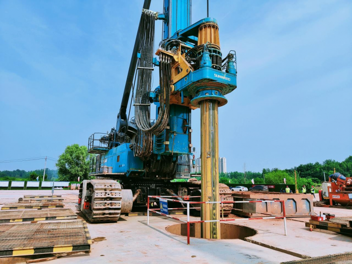 为保证成孔质量,项目团队通过改进钻头设计,利用智能超声成孔质量检测仪,对孔深、孔径及垂直度进行检测,不断摸索在钻进深度上出现斜孔的规律,并严格调控泥浆性能的关键指标,进一步提高清孔的标准要求。同时,项目团队也对钢筋笼下放及混凝土灌注工装进行改进,利用智能化中控中心把控混凝土质量等优化措施,有效克服了地质问题导致的成孔风险,保证了桩基施工质量。
