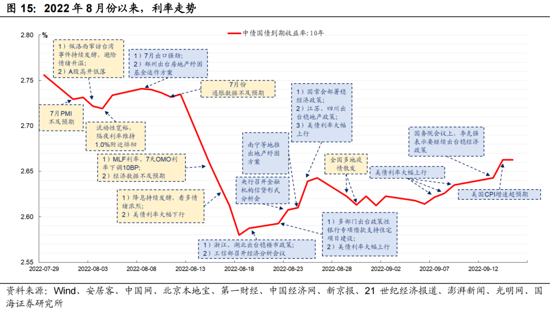 一方面,8月下旬以来,国内稳地产、稳经济政策频出;另一方面,进入9月份后,美国经济数据频频超预期,加剧了美联储进一步收紧货币政策的悲观预期,同时也打消了,短期内央行再度降息的乐观预期。