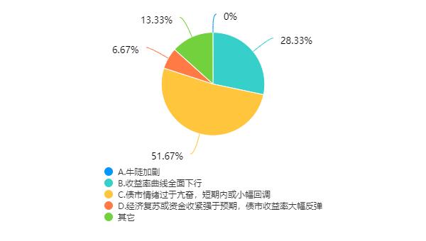 对于2022年第4季度债市走势,受访者普遍认为“债市情绪过于亢奋,短期内或小幅回调”。28.33%认为债市收益率曲线将全面下行。40%的受访者认为2022年第4季度10年期国债收益率更接近2.6-2.7%区间。30%的受访者认为更接近2.5-2.6%的区间。