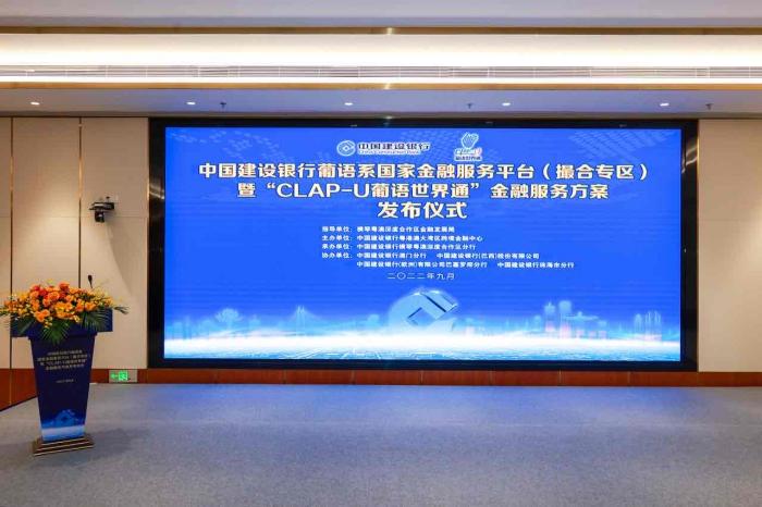 20日下午,中国建设银行举行发布仪式,正式推出葡语系国家金融服务平台(撮合专区)和 “CLAP-U葡语世界通”金融服务方案两大重磅品牌产品,开启建设银行推进横琴粤澳深度合作区与葡语系国家的金融互联互通新篇章。