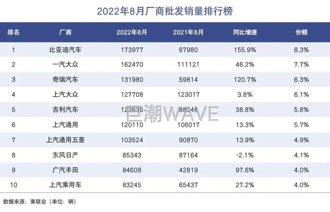 自6月之后,奇瑞的销量持续大涨。6月、7月和8月,奇瑞集团连续3个月单月销量均突破10万辆。今年8月,奇瑞控股集团销量约为14.2万辆,同比增长111%,超越“自主三强”;奇瑞表示,公司已全面开启了“加速模式”。