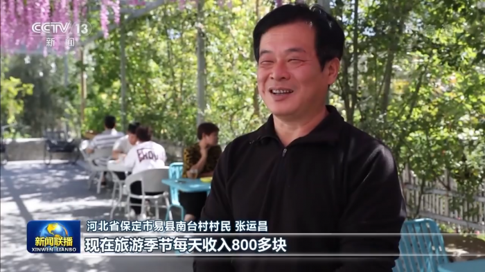 河北省保定市易县南台村村民 张运昌:我们村好多都靠旅游致富了,我家民宿入住率还是很高,现在旅游季节每天收入800多块,还有村集体分红。