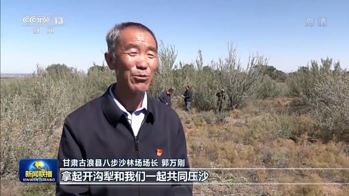 甘肃古浪县八步沙林场场长 郭万刚:2019年习近平总书记来到我们八步沙林场,拿起开沟犁,和我们一起共同压沙。总书记叮嘱我们要持续用力,久久为功。我们将持续践行习近平生态文明思想,牢记“困难面前不低头,敢把沙漠变绿洲”的新时代愚公精神,种更多的树,压更多的沙,以实际行动迎接党的二十大的胜利召开。