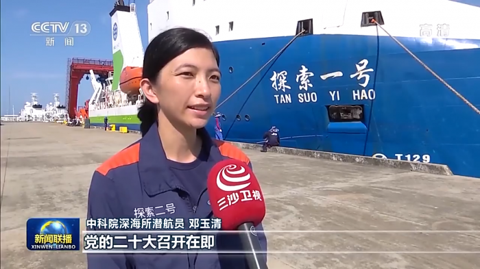 中科院深海所潜航员 邓玉清:过去十年,我们在深海深渊的探索中取得了历史性的成就。党的二十大召开在即,我们坚信在习近平总书记的带领下,我们建设海洋强国、科技强国的脚步可以越来越快,展现新的发展奇迹,我们也一定会为实现高水平科技的自立自强而奋斗。