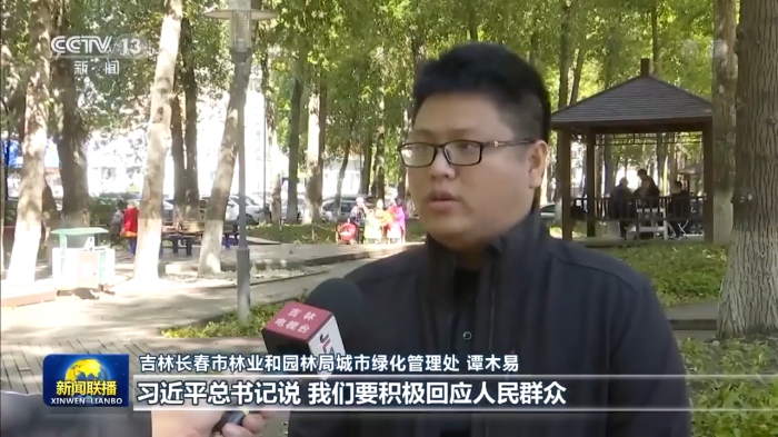 吉林长春市林业和园林局城市绿化管理处 谭木易:习近平总书记说,我们要积极回应人民群众所想、所盼、所急。我们要用自己的实际行动,要坚定不移按照习近平总书记的指示,为群众创造更好的生活环境,迎接党的二十大胜利召开。