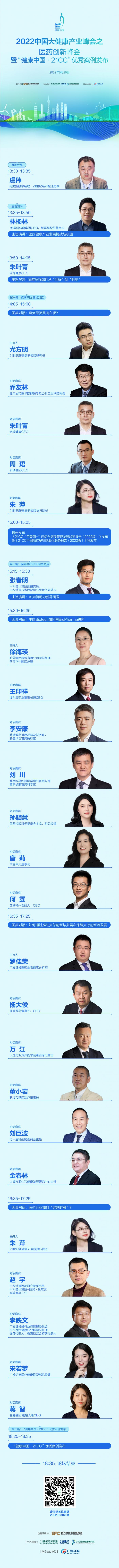 基于此,2022年9月29日,由南方财经全媒体集团指导,国内数字化智库型财经媒体领跑者《21世纪经济报道》、21世纪新健康研究院主办,广发证券联合主办的“2022中国大健康产业峰会之医药创新峰会暨“健康中国•21CC”优秀案例”将正式线上发布。大会将邀请行业专家、产业领袖、技术先锋和投资机构等代表嘉宾,围绕中国医药创新大变局、癌症早筛早诊早治及药物可及性等多个时下热点话题展开对话交流,共同探路未来。