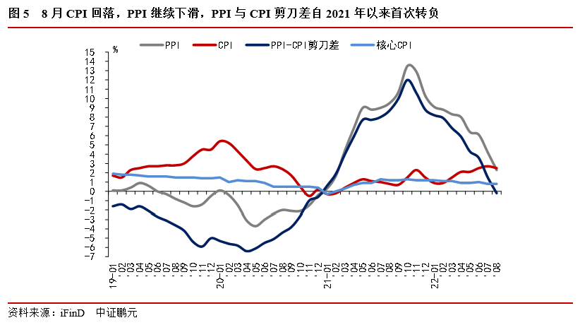 总结来看,8月CPI同比增速回落,表现为食品中猪肉、鲜菜拉动作用减弱,能源价格回落,核心CPI偏低,折射出内需不足。PPI同比增速继续回落,受去年高基数和大宗商品价格回落影响。PPI-CPI的剪刀差自2021年以来首次转负,企业成本有望缓解,利润将得到改善。往后看,PP1将继续下行,本轮猪周期开启,CPI在猪肉推动下仍有可能突破3%的红线。“猪贱伤农,肉贵伤民”,需做好生猪市场保供稳价工作,预计全年CPI增速可控尤其是核心CPI处较低水平,在全球高通胀背景下,我国通胀水平偏低,目前通胀仍不是市场的主要矛盾,不会对货币政策形成掣肘。