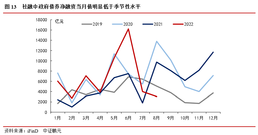 8月社会融资规模增量为2.43万亿元,比上年同期少5,571亿元,低于季节性水平(近三年同期均值为3万亿元),稍好于Wind一致预期2万亿元。社融存量增速10.5%,相比上月增速回落0.2个百分点。表内融资改善,社融口径的新增人民币贷款1.33万亿元,同比多增631亿元,几乎达到近三年平均值1.34万亿元。表外非标融资是本月社融改善的亮点,委托贷款同比多增1,578亿元;信托贷款同比少减890亿元;未贴现的银行承兑汇票同比多增3,358亿元,远超季节水平。直接融资均同比少增拖累社融,其中政府债是拖累社融的最大项目,明显低于季节性水平,主因今年专项债发行在6月末收官,与去年政府债的发行周期错位。