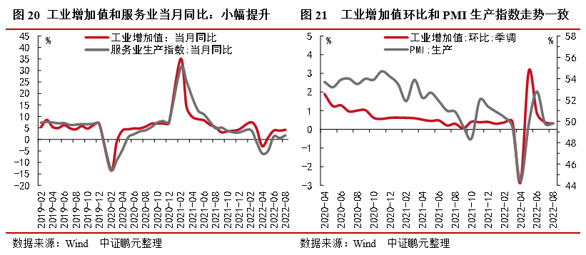 (三)供给端:工业生产和服务业小幅上升,PMI虽有改善仍处荣枯线以下