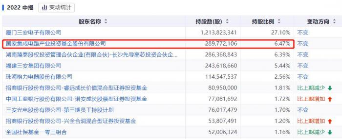 大基金也是三安光电的第二大股东,持股6.47%。