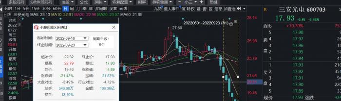 市场草木皆兵,自9月16日起,在6个交易日内,三安光电股价跌去20%。千亿芯片巨头的市值蒸发219亿元。