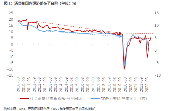 从同比增速角度看,2022年1季度社零同比增速为3.27%,最终消费对GDP的拉动率为3.33%,而最终消费支出占比GDP约55%左右,这意味着要想实现3.33%的拉动,最终消费需要更高的增速。
