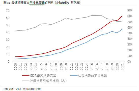 首先,社零与最终消费存在统计口径上的区别。