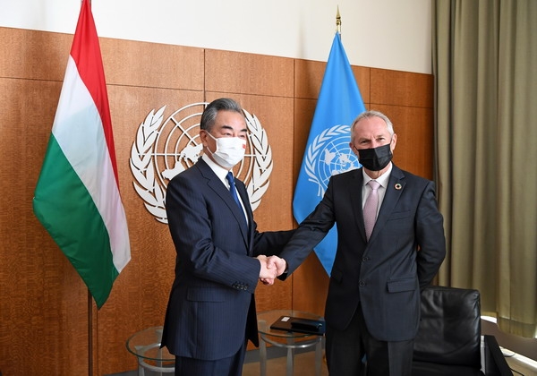 当地时间2022年9月24日,国务委员兼外长王毅在纽约出席联大期间会见第77届联合国大会主席克勒希。