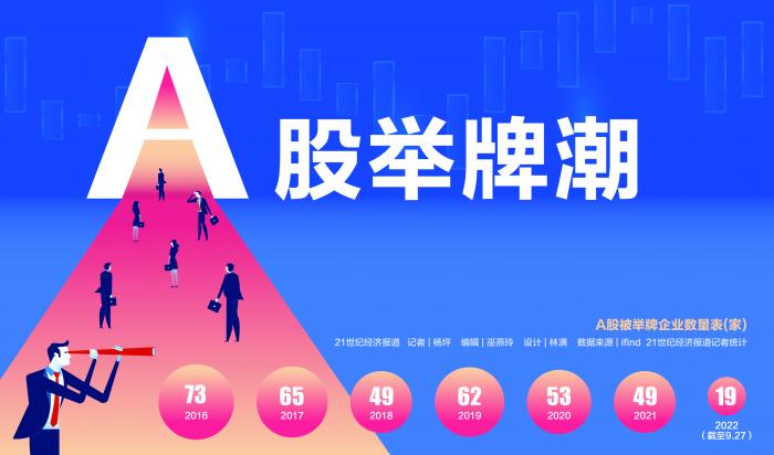 从全年表现来看,今年的举牌事件并不算密集。据21世纪经济报道记者统计,2016年至2021年,A股市场被举牌的企业数量分别为73家、65家、49家、62家、53家和49家,2022年呈现一定的下滑态势。