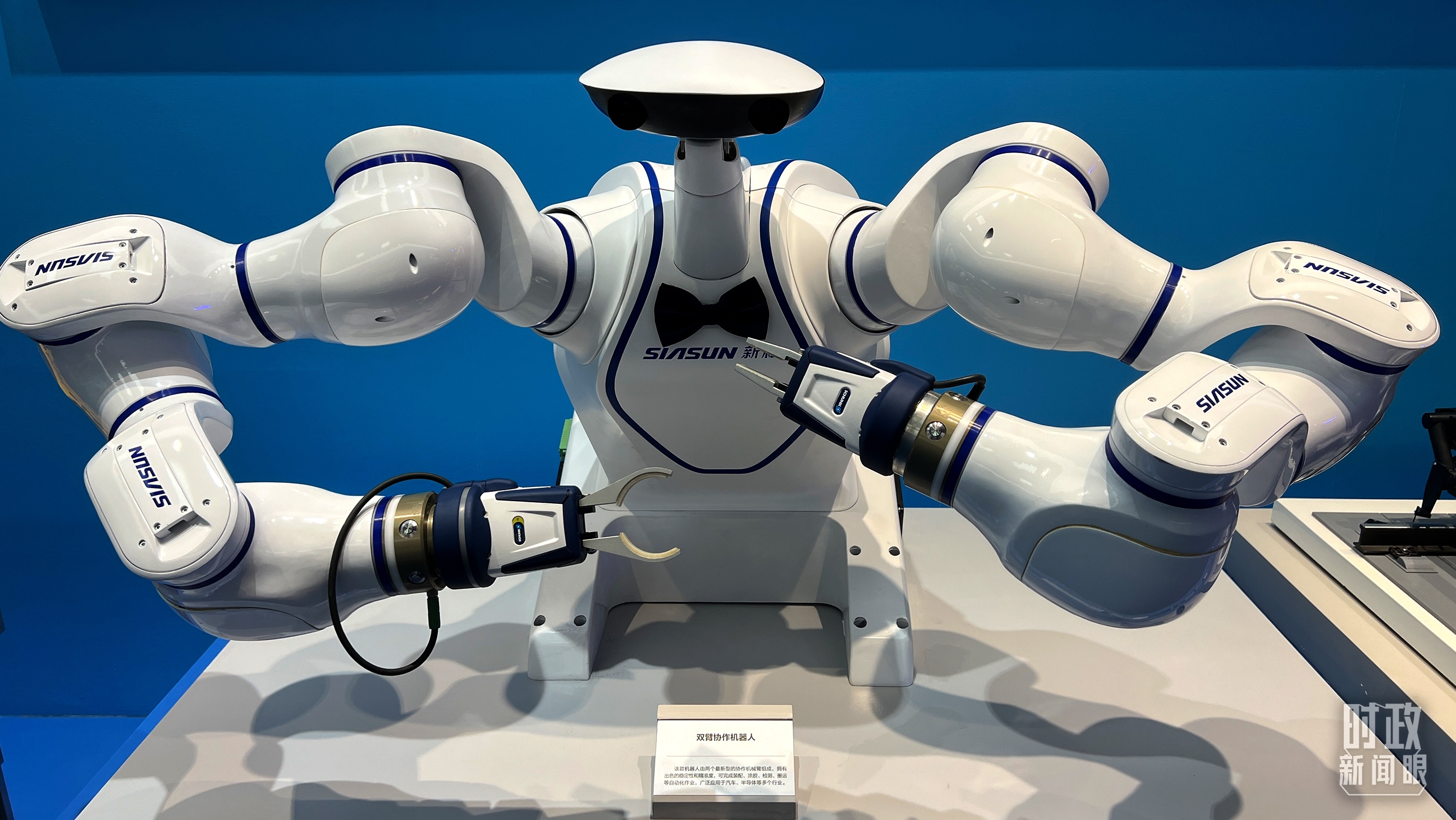 △ 双臂协作机器人,可完成装配、涂胶、检测、搬运等自动化作业。(总台央视记者赵化拍摄)