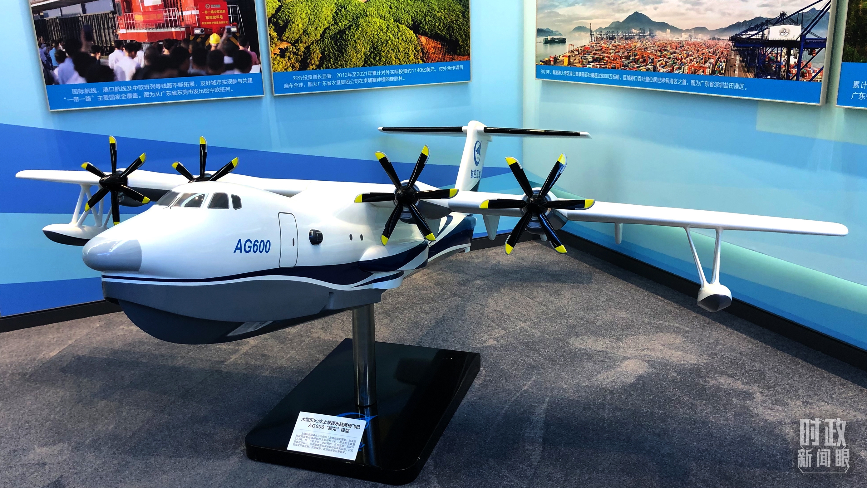 △ 大型灭火/水上救援水陆两栖飞机AG600“鲲龙”模型。(总台央视记者许永松拍摄)