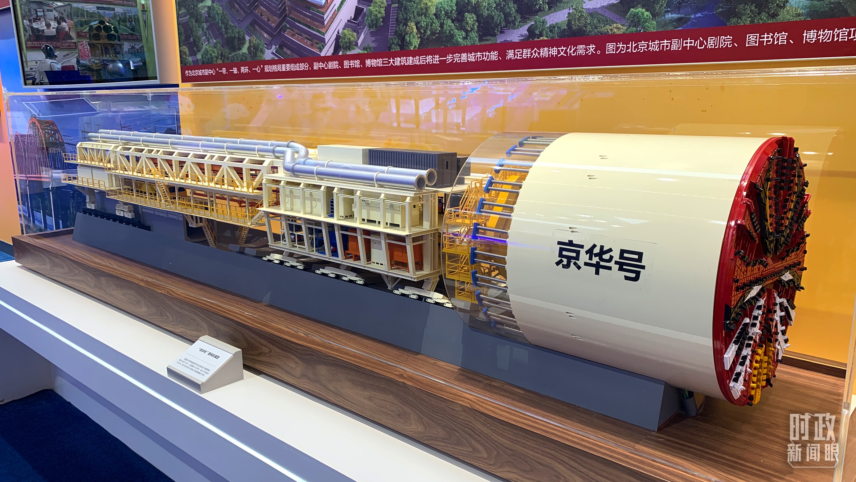 △“京华号”盾构机模型。整机长度150米,用于北京市东六环改造工程西线隧道工程中。(总台央视记者许永松拍摄)