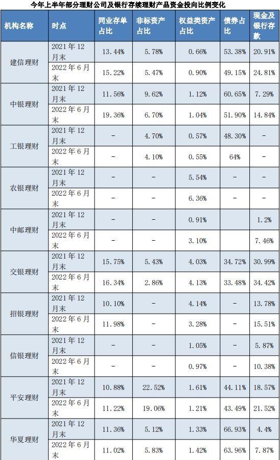 面对投资者风险偏好下降,在减少净值波动的压力下和上半年“资产荒”的背景下,理财公司今年上半年普遍调整配置策略,加大对同业存单、银行存款等配置力度,减少对债券、权益资产的配置。